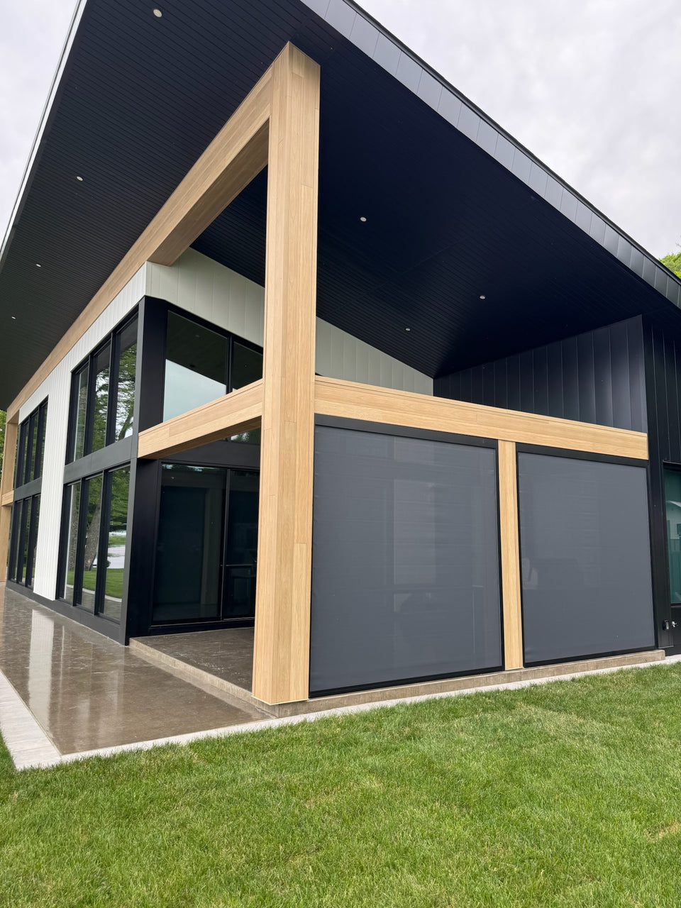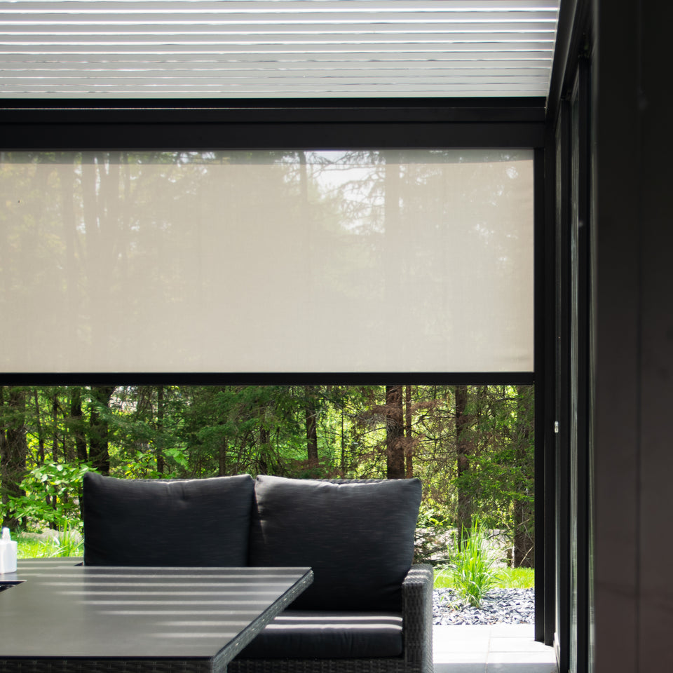Protection solaire et intimité sur simple pression d'un bouton. Nos toiles motorisées s'installent sur pergola, toit couvert ou toute structure extérieure.